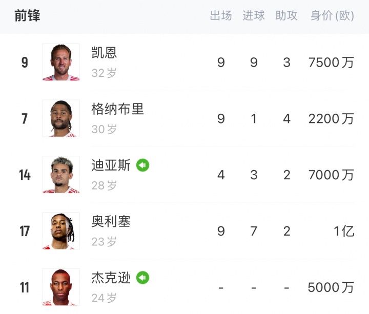 拜仁前场阵容:(不含二队小将)